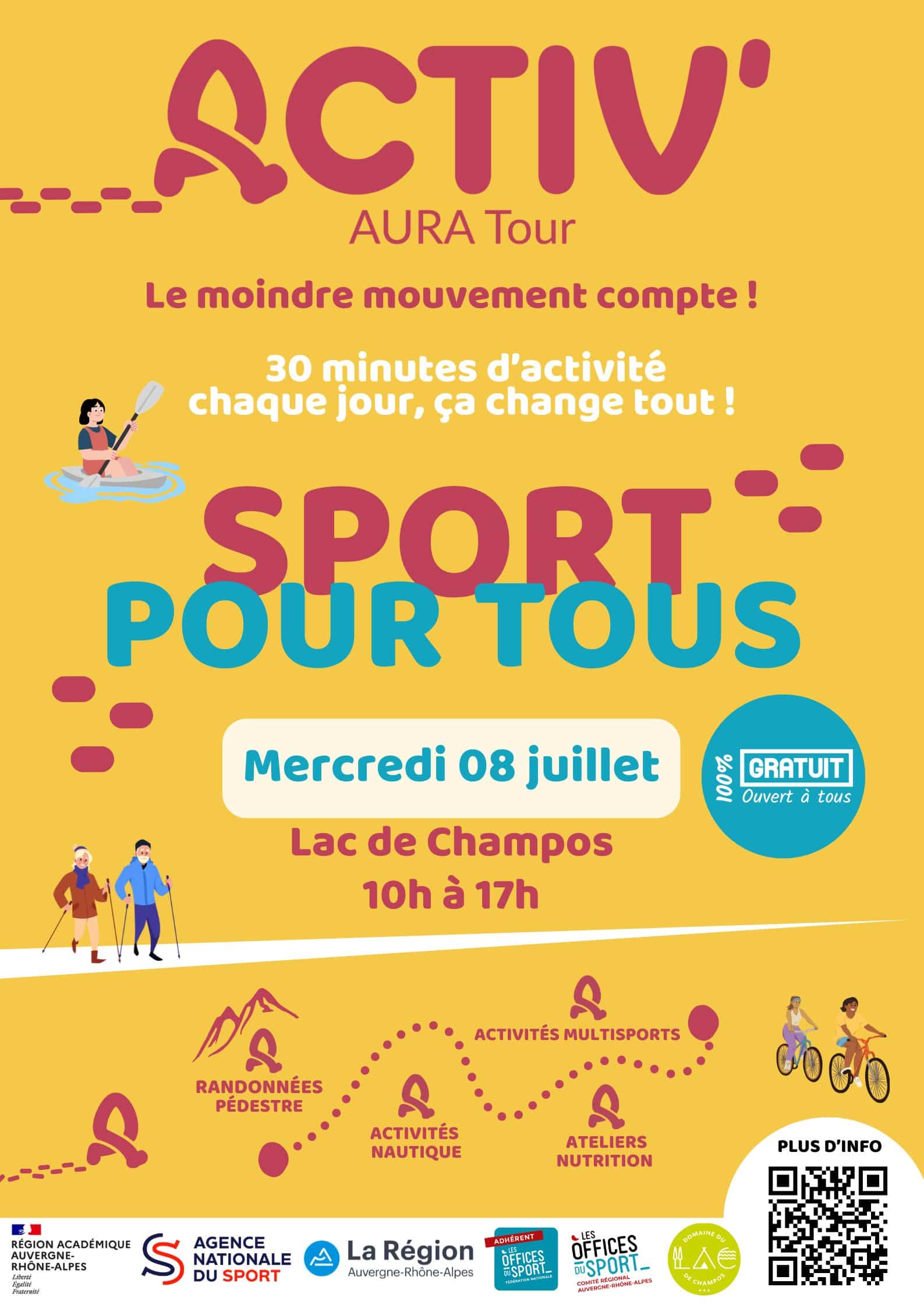 Le 08 JUILLET 2026, viens participer à ACTIV’AURA Tour au domaine du Lac de Champos de 10h à 17h 🌞